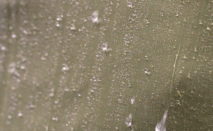 超撥水加工とPU防水加工、さらに縫い目からの浸水を防ぐシーリング加工でしっかり撥水防水します。