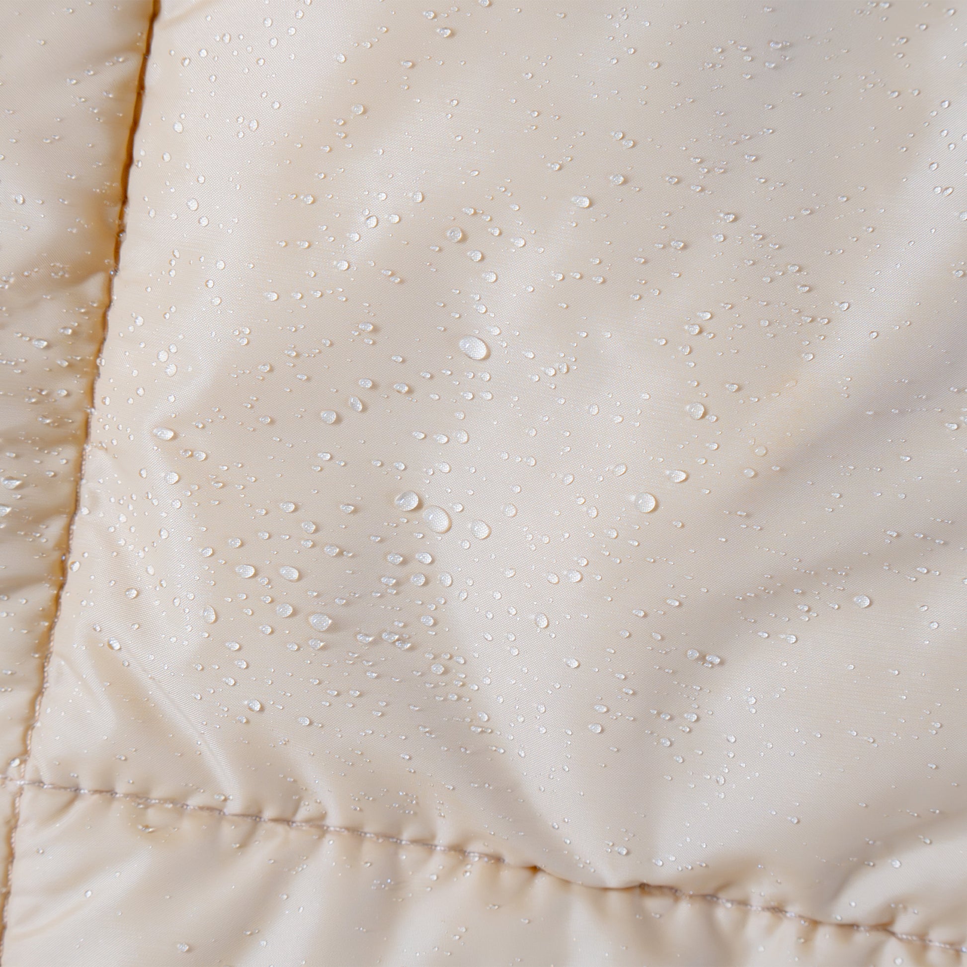ポリエステル素材の中空糸ダウンは軽量で保温力に優れ、水に濡れても保温力が低下しない特徴を持っています。