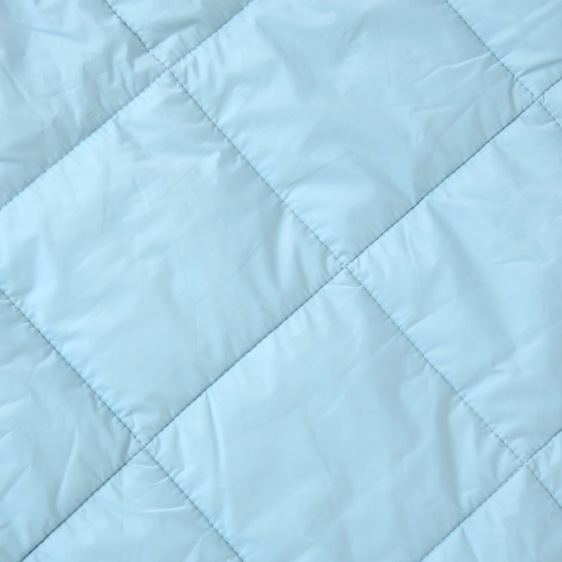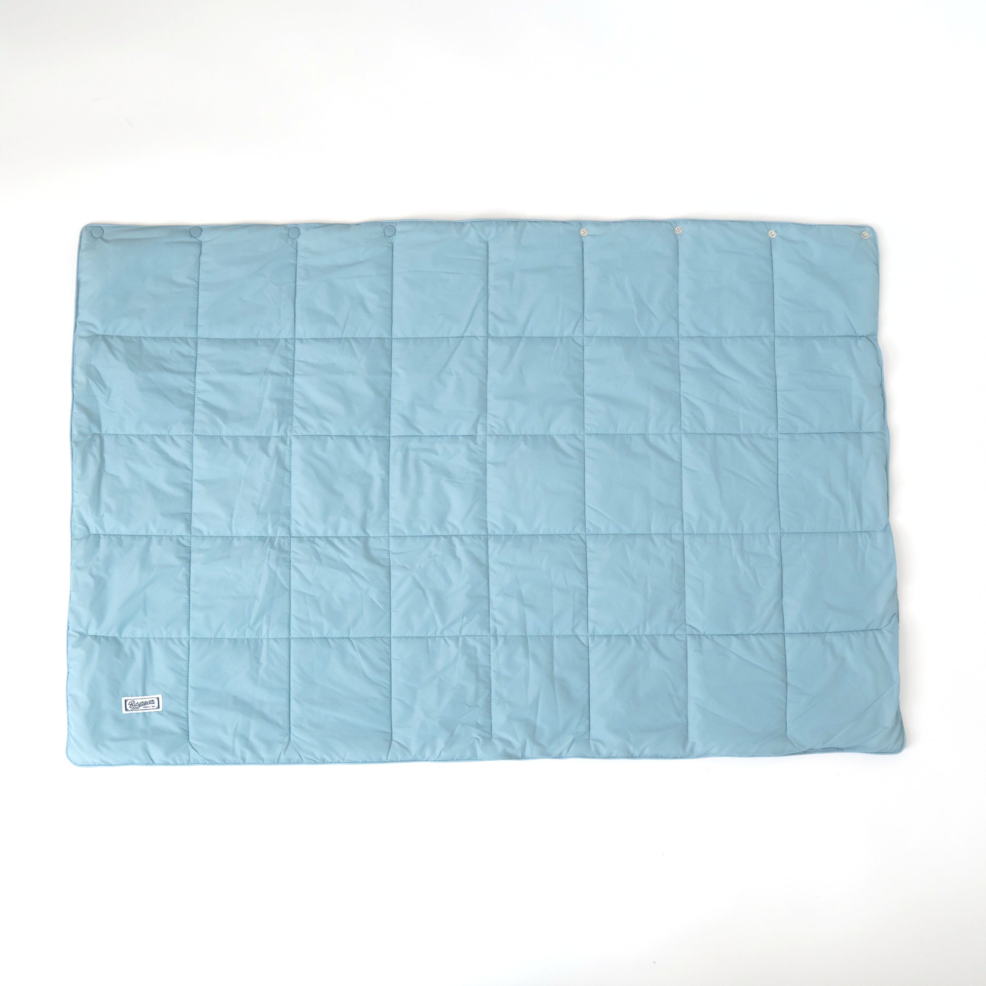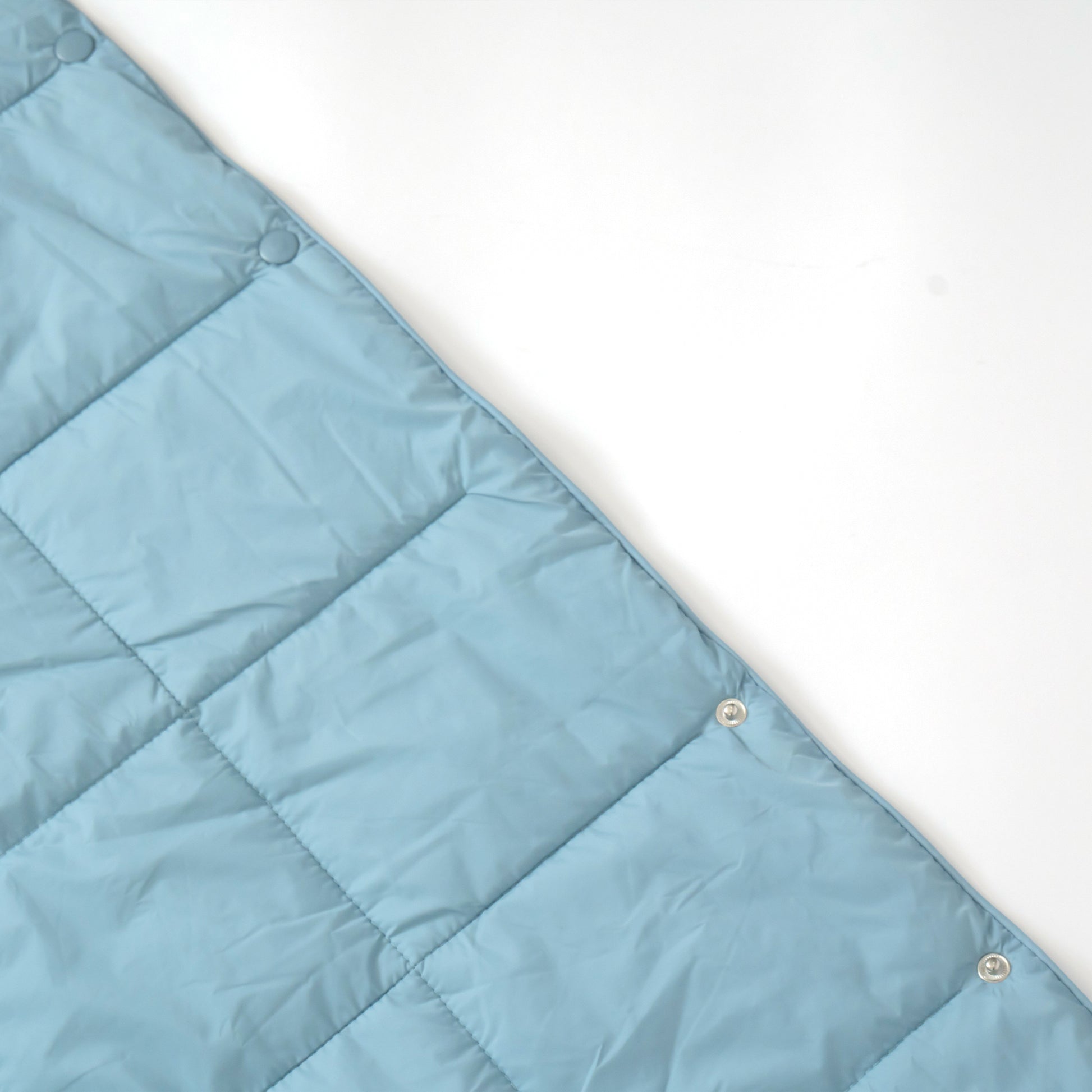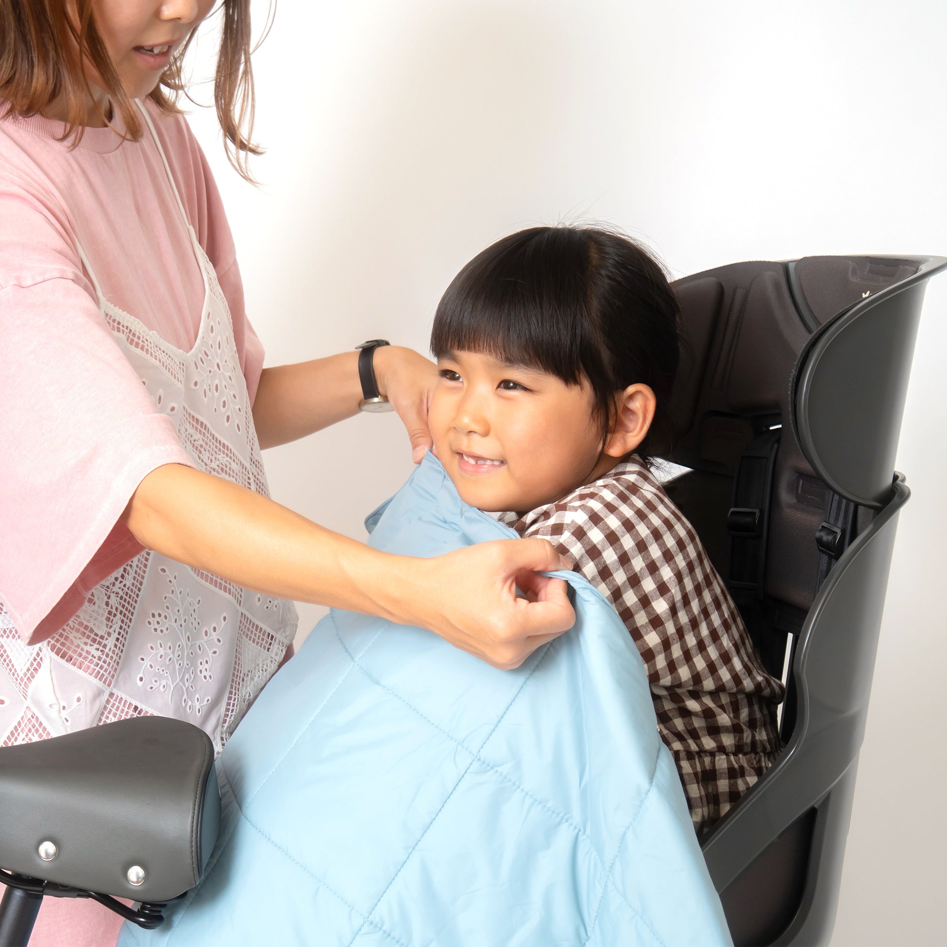 寒い日の風から守ってくれる、コンパクトに収納可能な子供のせ自転車向けのこどもダウンブランケットです。