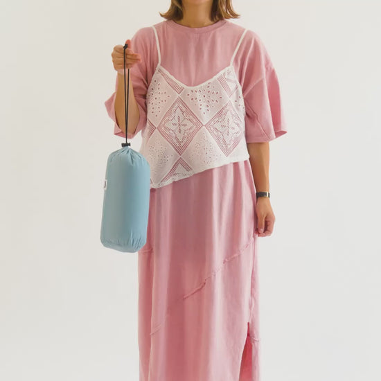 ダウンブランケットは保温力に優れながらも軽量で、羽織っていていも重さを感じません。